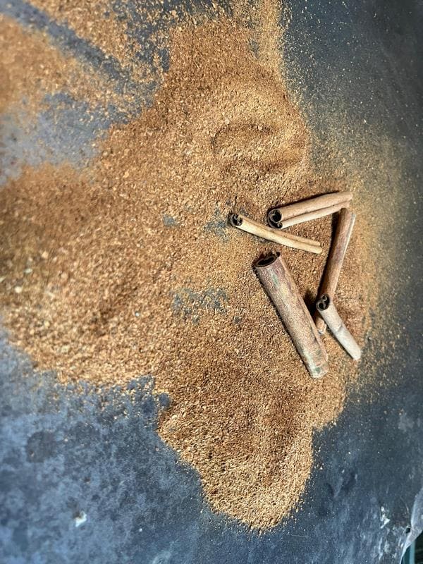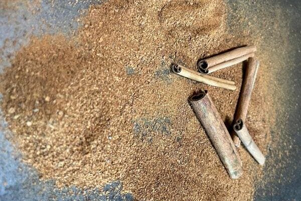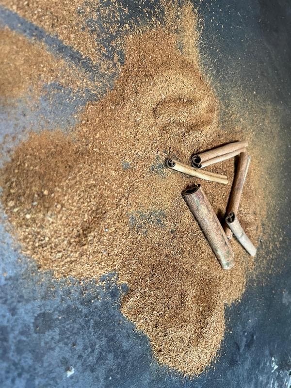 Fine cinnamon ash derived from cutting residues, suitable for incense, natural coloring, and various industrial applications.
